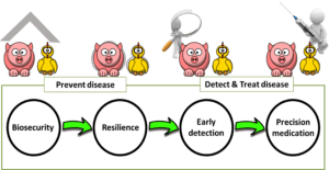 Interesting topics in the presentation as the main objective of HealthyLivestock project and its four important strategies: Biosecurity, Resilience, Early detection, and Precision medication, Each strategy was well explained by demonstrating research and results out of the project.